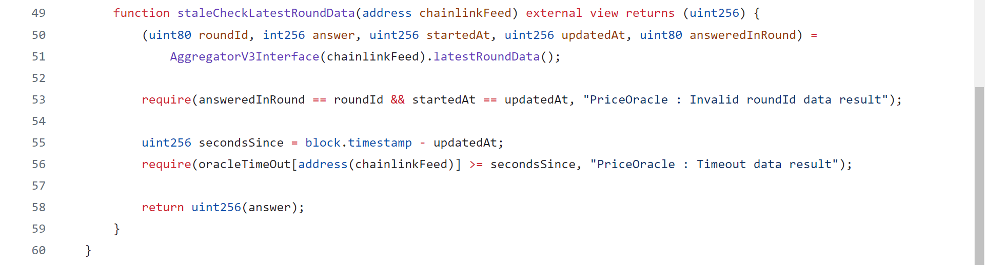 We can see that at line 53, 56 we make some checks regarding to whether the oracle is correctly working or not.