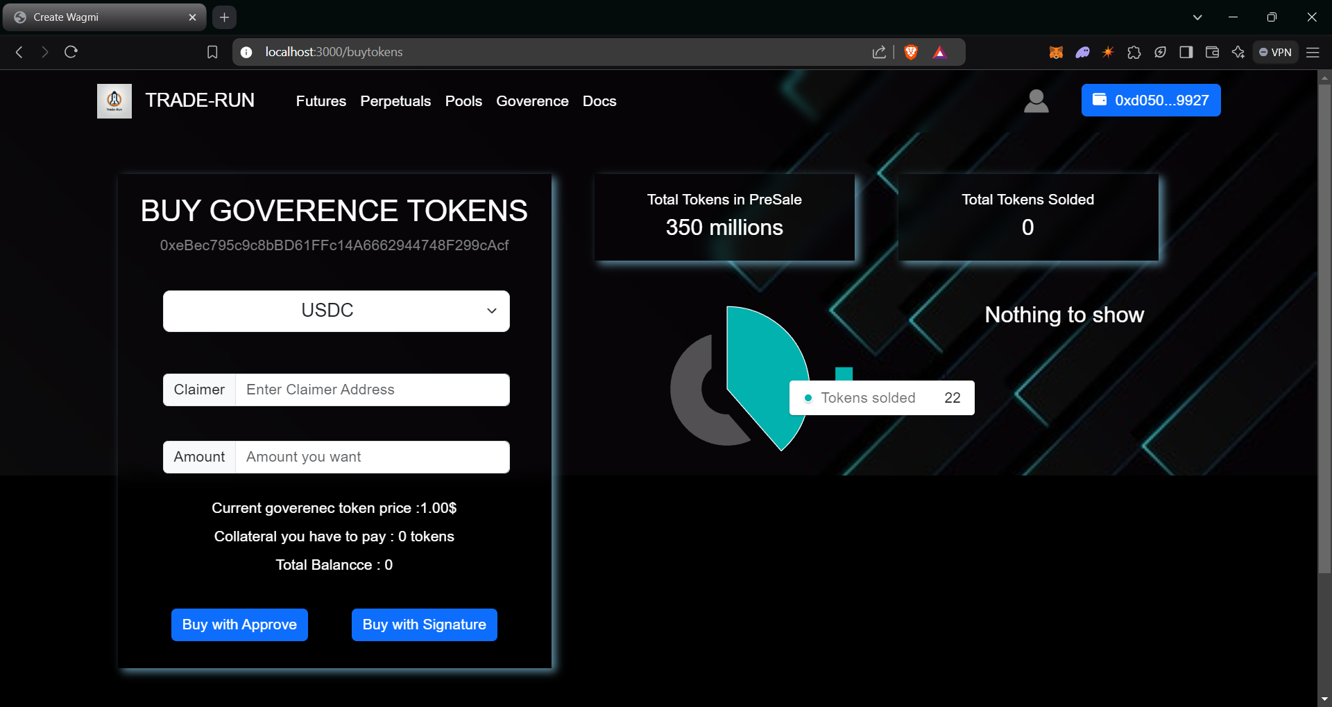 - Users can buy the goverenec tokens directly from the presale contract(marketplace).